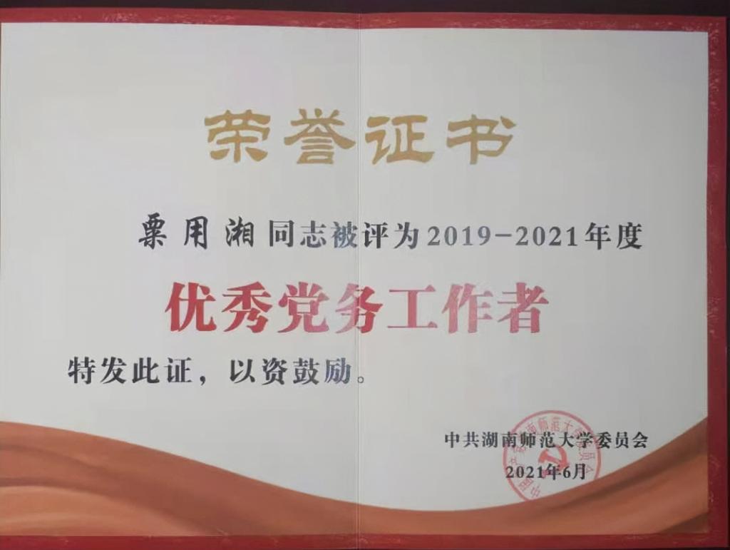 6月29日上午,学校庆祝中国共产党成立100周年表彰大会在国际学术报告厅举行,校党委书记蒋洪新讲话,校党委副书记、校长刘起军主持会议。我处党支部被评为学校党委2019-2021年度“先进基层党组织”、处党支部书记粟用湘被评为学校党委2019-2021年度“优秀党务工作者”。同时,我处党支部还被学校机关党委评为“先进基层党组织”。