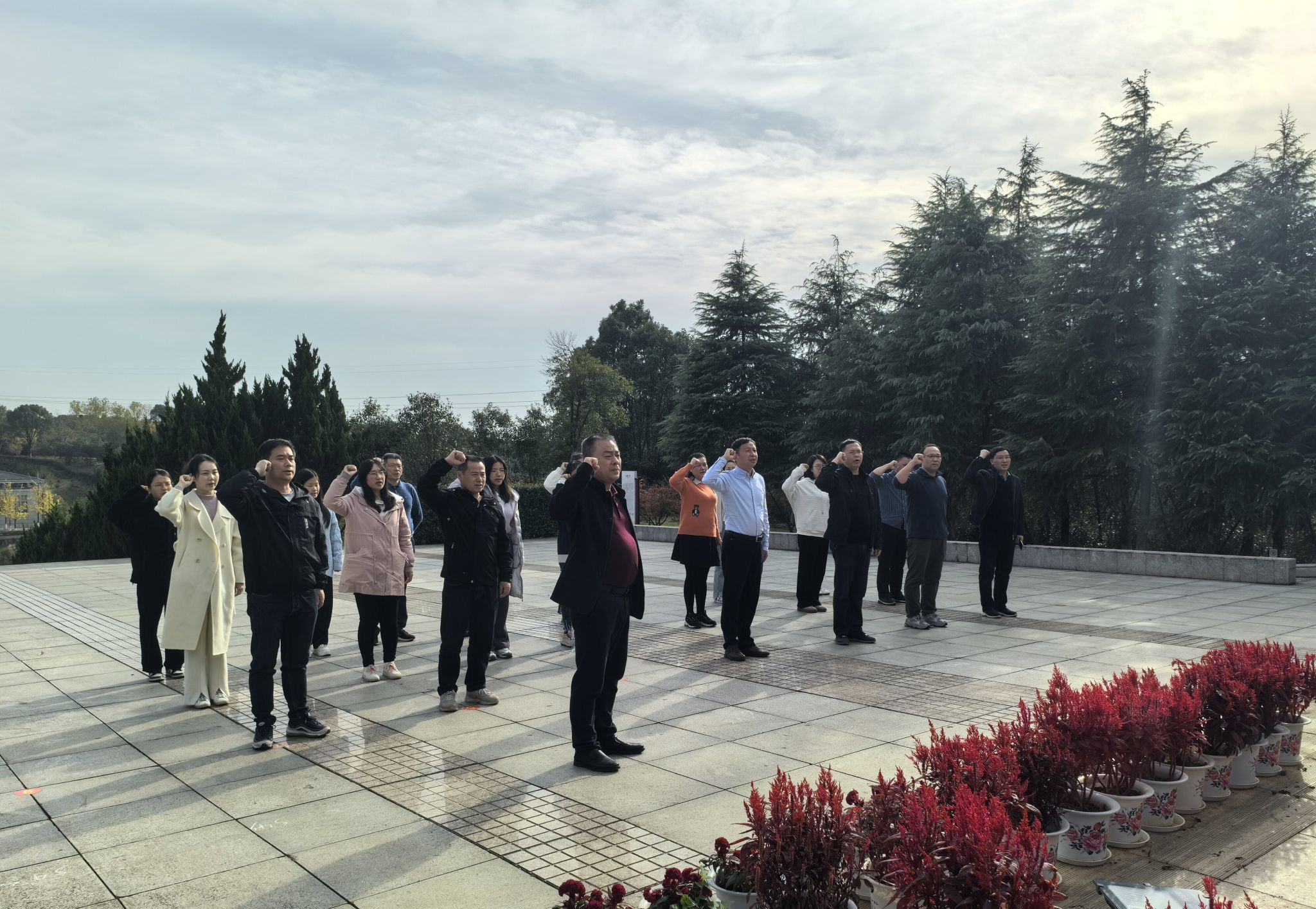 沿着伯渠小道,大家来到庄严肃穆的林伯渠同志铜像广场,怀着崇敬之情向林伯渠铜像鞠躬致敬。在处党支部书记罗万才的带领下,面对鲜红的党旗,全体党员庄严地举起右手,重温入党誓词,深切感受着革命先烈伟大的人格魅力和坚定的革命信仰,再次接受灵魂的洗礼。