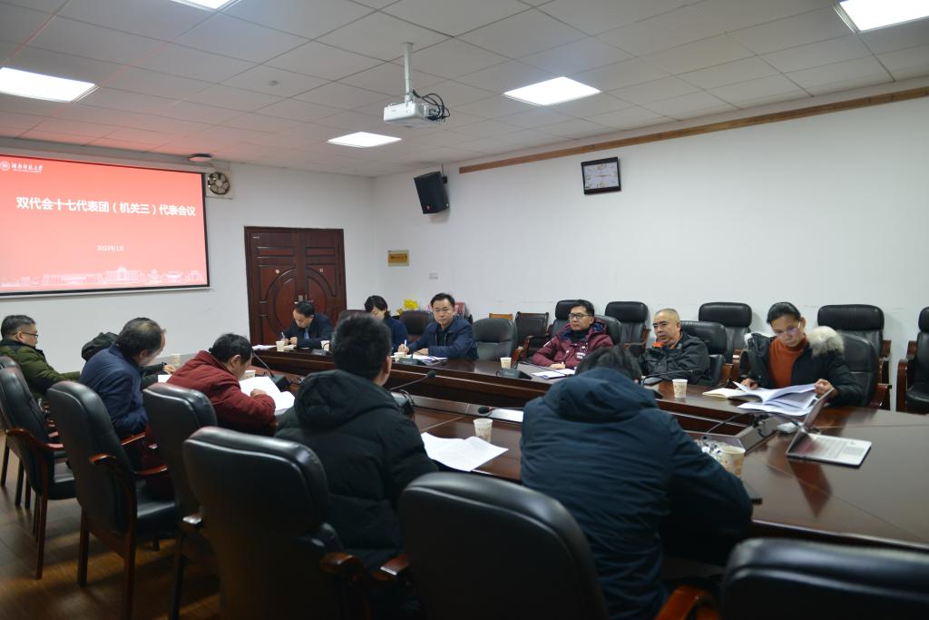 2022年1月7日上午,英国威廉希尔公司“双代会”第十七代表团(机关三)在资产与实验管理处二楼会议室召开代表大会,讨论英国威廉希尔公司“十四五”事业发展规划(征求意见稿)。会议由代表团副团长、资产与实验室管理处处长向坚持主持。
