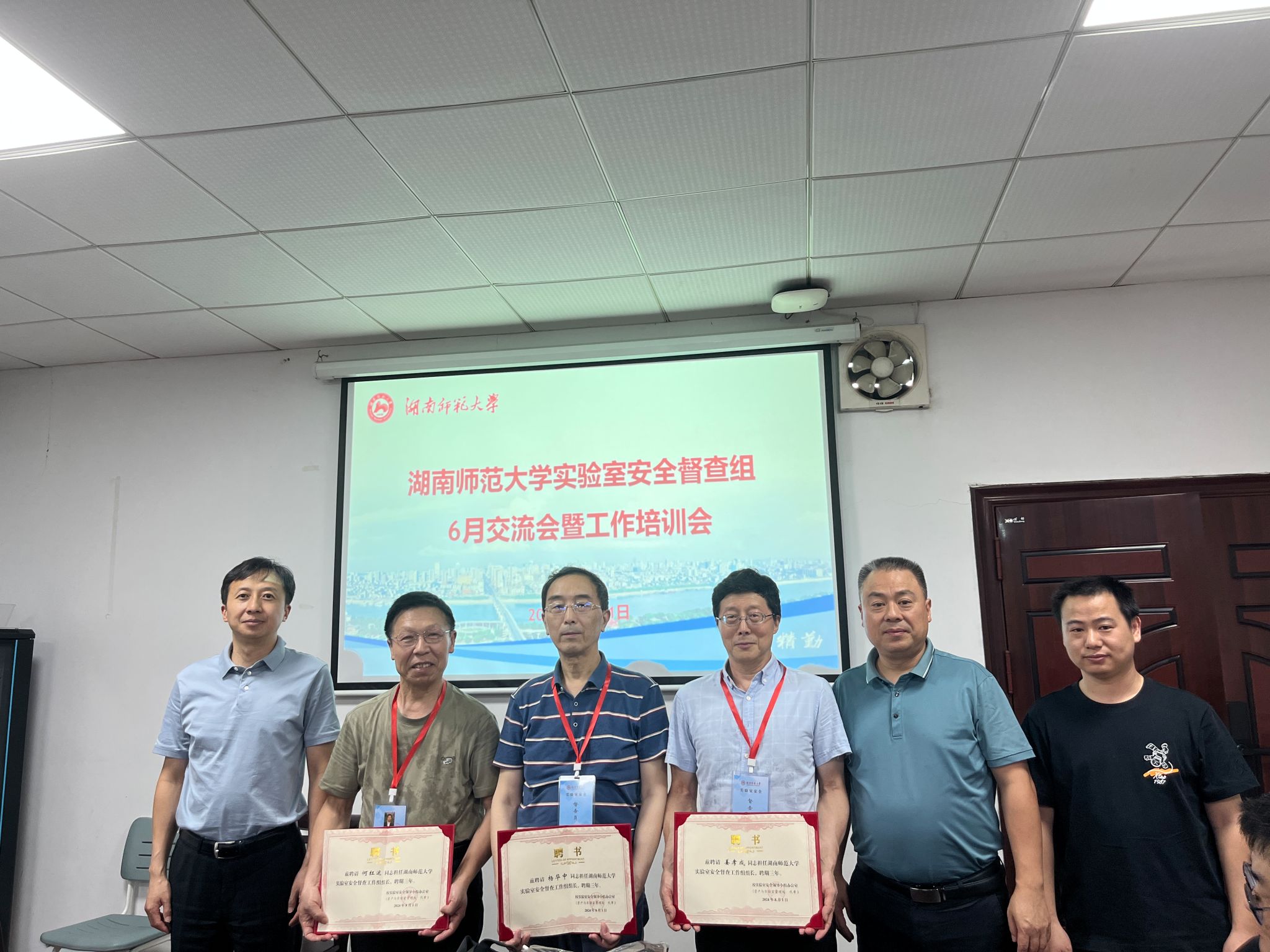 会上,罗万才宣读学校聘任决定,许广为校实验室安全督查工作组组长和组员颁发聘书。许广对校实验室安全督查组为实验室安全检查所做出的成绩表示感谢并欢迎新一届的督查组成员,希望大家继续做好实验室安全督查工作,为学校实验室安全工作保驾护航。罗万才对新聘任组员提出三点要求:一是要尽快熟悉实验室安全检查标准,提升技能;二是要成为实验室安全遵规守纪的模范典型,发挥榜样作用;三是要做好日常检查工作,预防减少实验室安全事故。