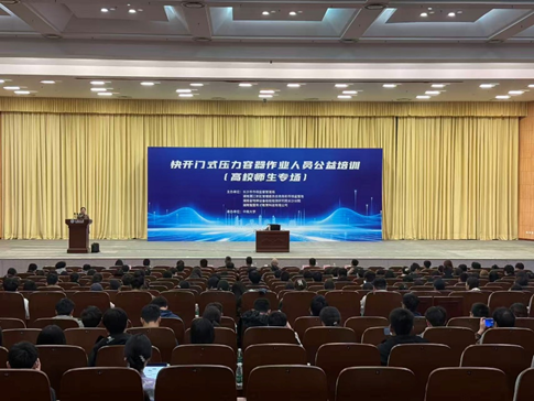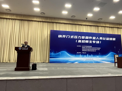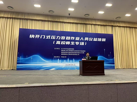 湖南湘江新区商务和市场监管局党组成员李雄飞在致辞中指出,快开门式压力容器广泛应用于高校科研实验室,具有高温高压、快速启闭等特点,属于高风险特种设备。此次“送教上门、安全入校”公益培训,旨在从源头杜绝无证操作、违规使用等安全隐患,帮助师生树立“生命至上、安全第一”的理念,全面提升实验室特种设备安全管理水平,守护师生人身财产安全。