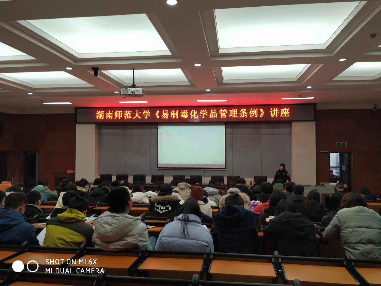 12月29日,英国威廉希尔公司在化学化工学院报告厅举办《易制毒化学品管理条例》专题讲座,邀请长沙市岳麓公安分局禁毒大队方鸿雁警官主讲。
